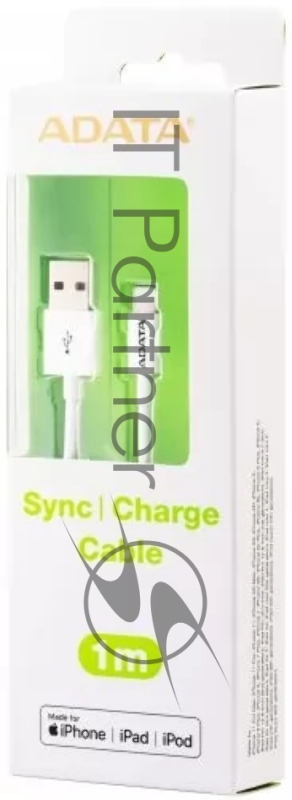 Кабель USB Cable ADATA Lightning-USB AMFIPL-1M-CWH 1m, Sync & Charge, Fast charging up to 2.4A, Apple MFi-certified, White, RTL