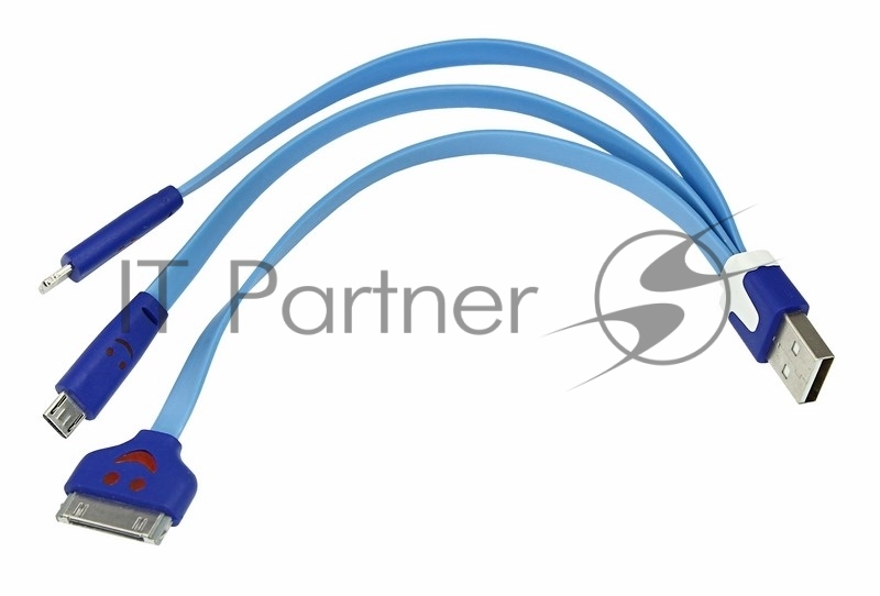 USB кабель 3 в 1 светящиеся разъемы для iPhone 5/4/microUSB шнур 0.15 м синий