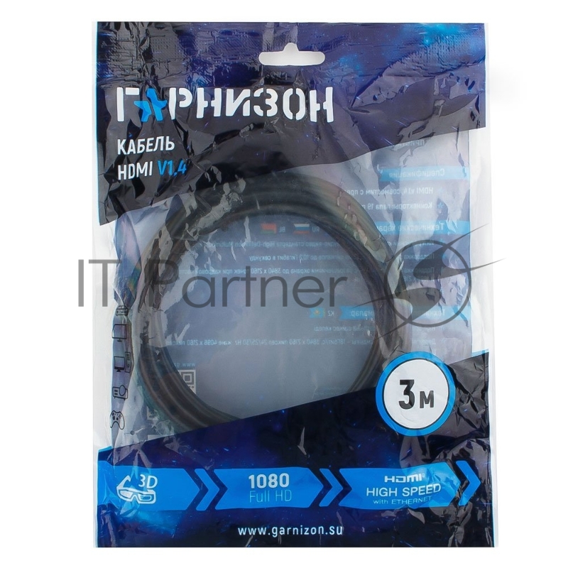 Кабель HDMI Гарнизон 3м, v1.4, M/M, черный, пакет (GCC-HDMI-3М)