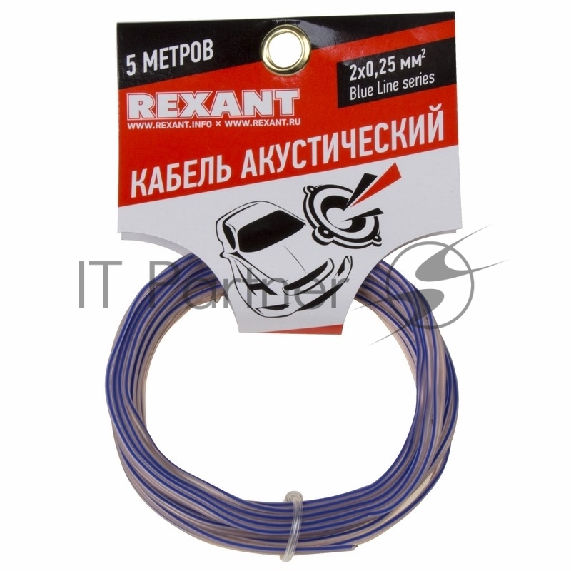 Кабель акустический REXANT 2х0,25 мм², прозрачный BLUELINE, мини-бухта 5 м