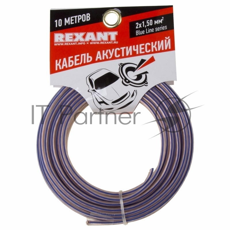 Кабель акустический REXANT 2х1,50 мм², прозрачный BLUELINE, мини-бухта 10 м
