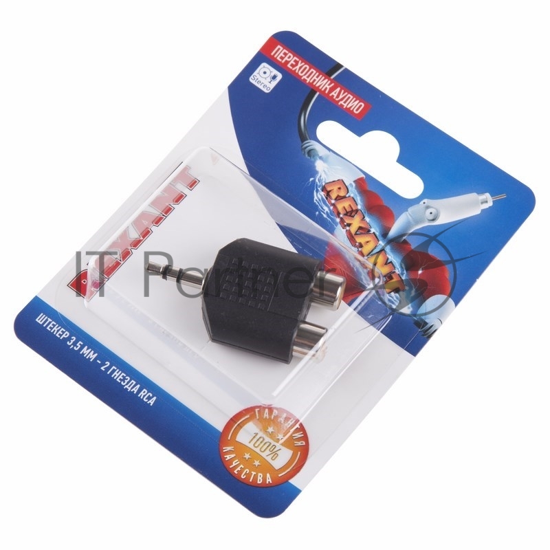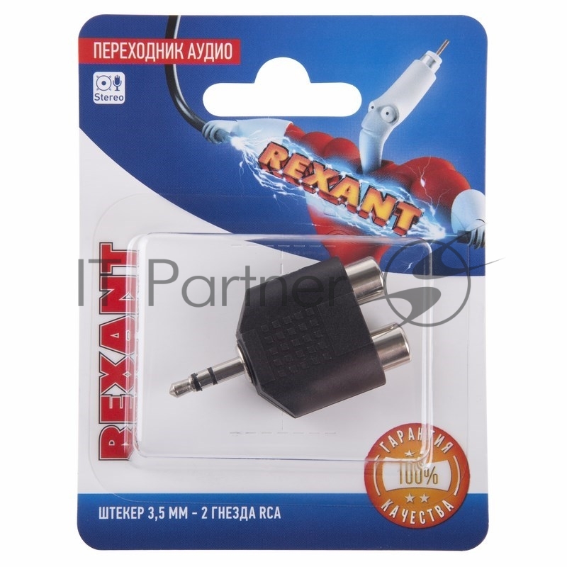 Переходник аудио (штекер 3,5мм. стерео - 2 гнезда RCA), (1шт.) REXANT