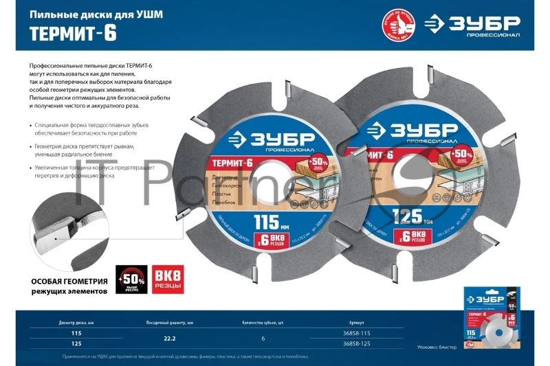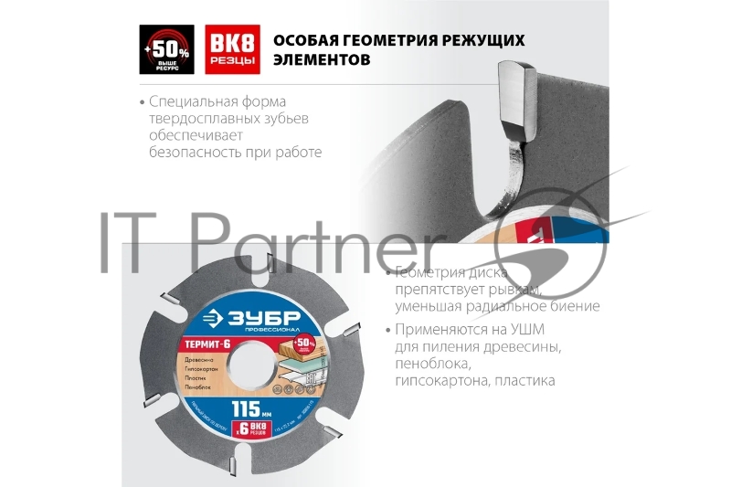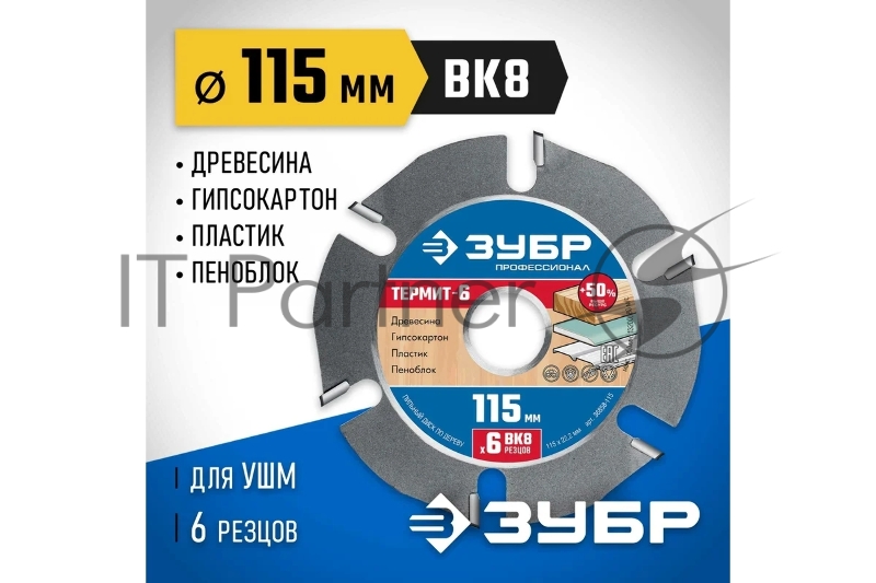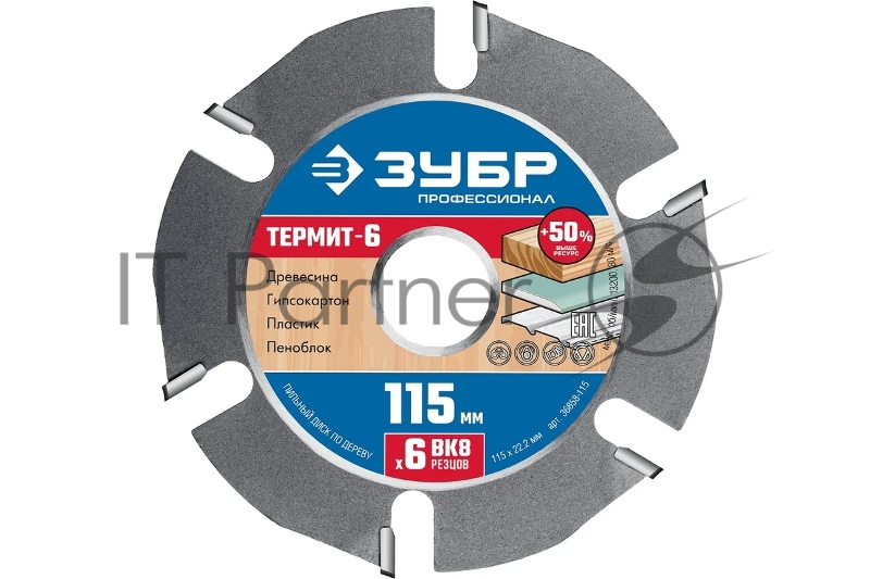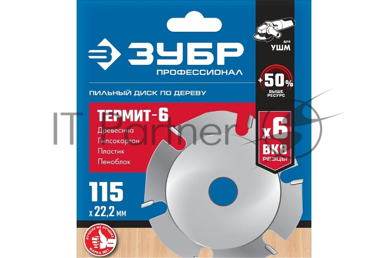 Диск пильный по дереву для УШМ, ЗУБР Термит-6 115х22,2мм, 6 резцов, усиленный