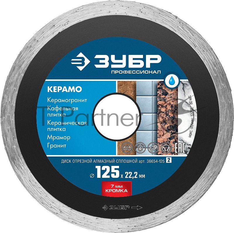 Диск алмазный отрезной сплошной по керамограниту, мрамору, плитке, КЕРАМО-22 115 мм, ЗУБР Профессионал