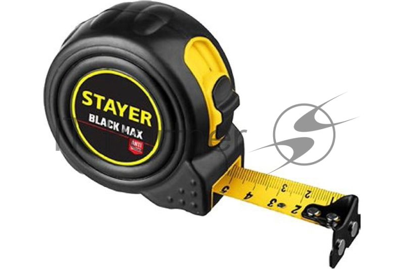 Рулетка STAYER BlackMax 10м / 25мм в ударостойком полностью обрезиненном корпусе и двумя фиксаторами