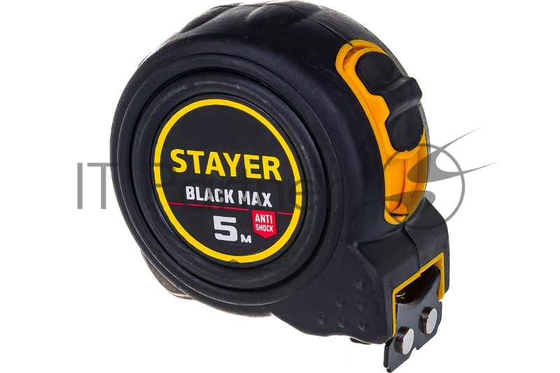 Рулетка в ударостойком полностью обрезиненном корпусе и двумя фиксаторами STAYER BlackMax 5м / 25мм