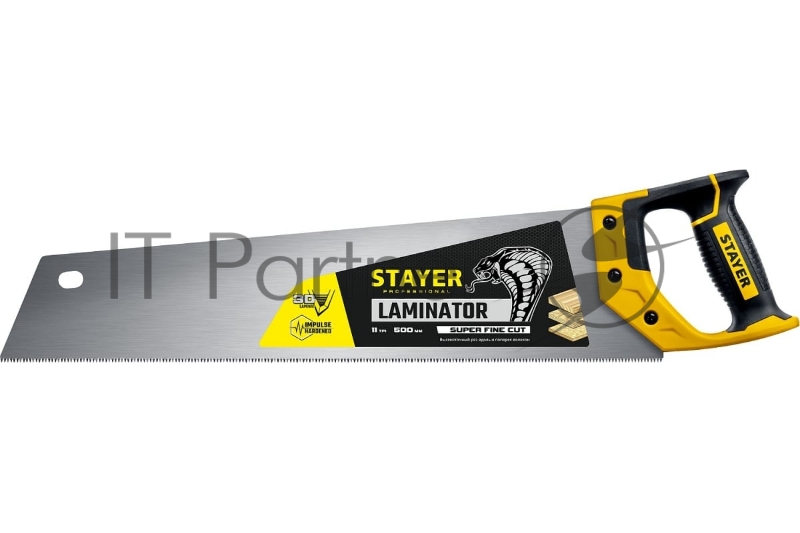 Ножовка многоцелевая (пила) COBRA Laminator 500мм, 11TPI, 3D высокоточный рез ламинир. дерев. и пластик. панелей, подоконников и труб, STAYER