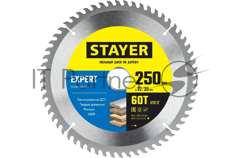 Диск пильный по дереву, точный рез STAYER EXPERT 250 x 32/30мм 60Т