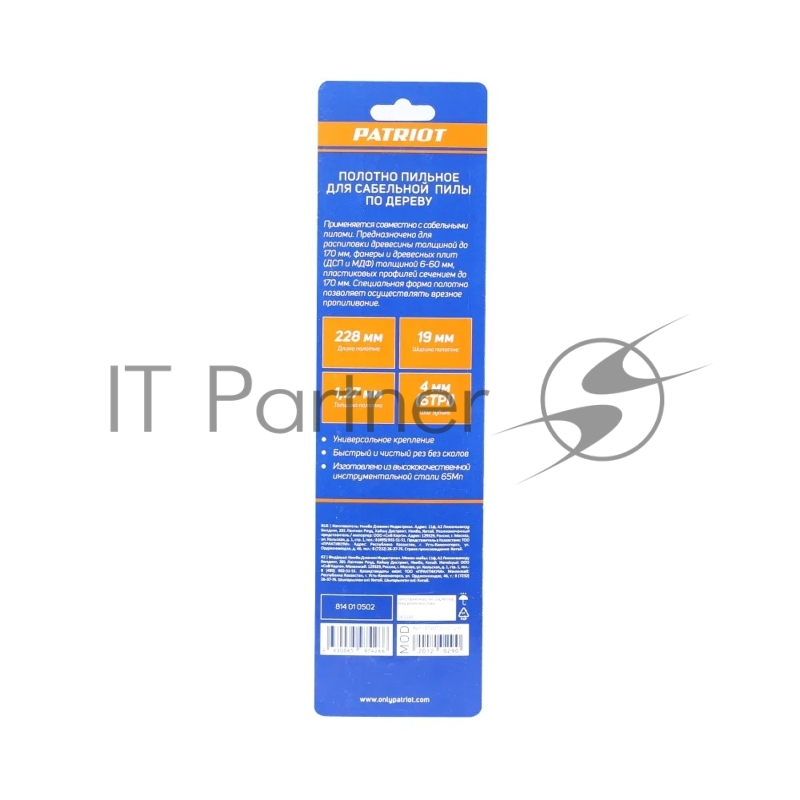 Полотно пильное PATRIOT для сабельной пилы, по дереву 228*19*1.27мм*6T 2 шт.