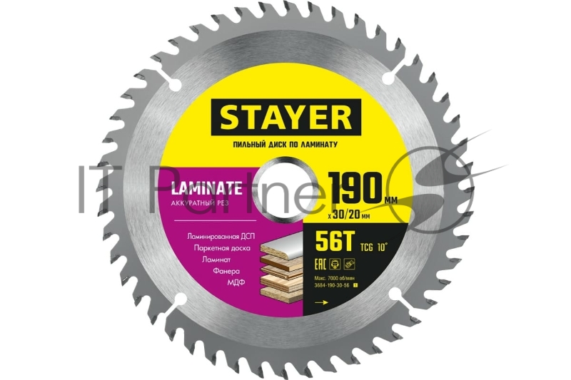 Диск пильный по ламинату, аккуратный рез STAYER LAMINATE 190 x 30/20мм 56T