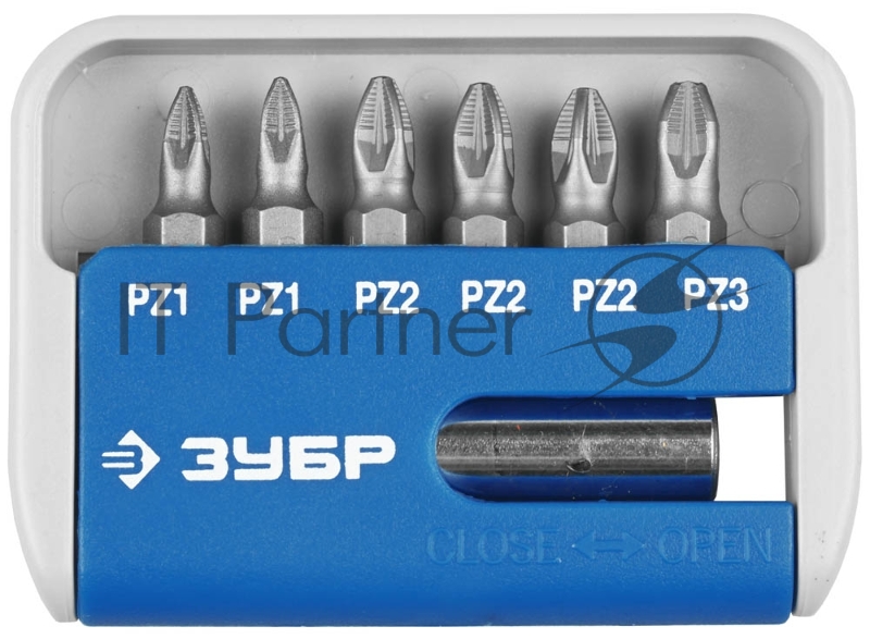 Набор ЗУБР: Биты с магнитным адаптером, хромомолибденовая сталь S2, PZ1(2шт), PZ2(3шт), PZ3(1шт), 7 пред