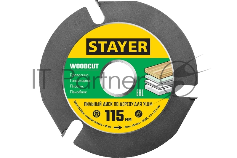Диск пильный по дереву для УШМ STAYER WOODCUT 115х22,2мм, 3 резца,