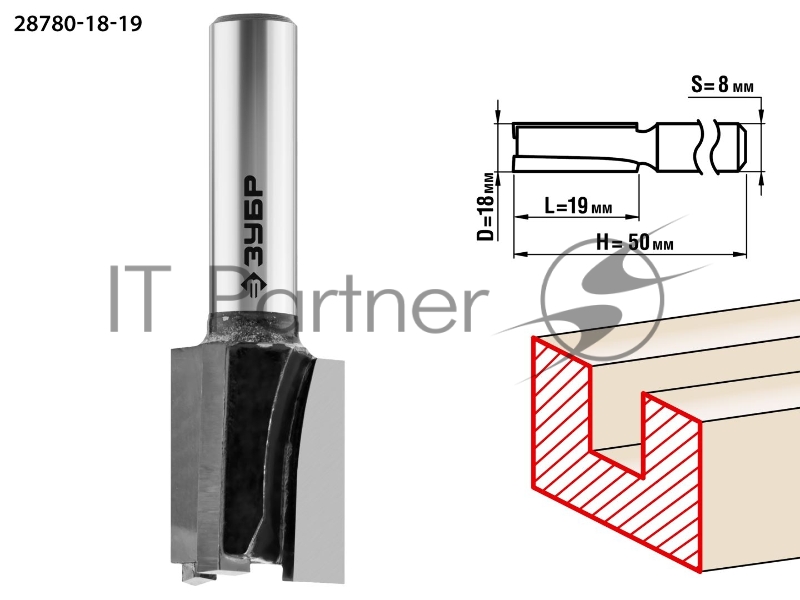 Фреза пазовая прямая ЗУБР 18x19мм, хвостовик 8мм