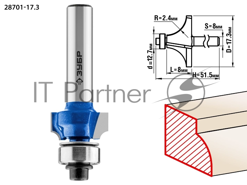 Фреза кромочная калевочная №1 ЗУБР 17.3x7мм, радиус 2.4мм
