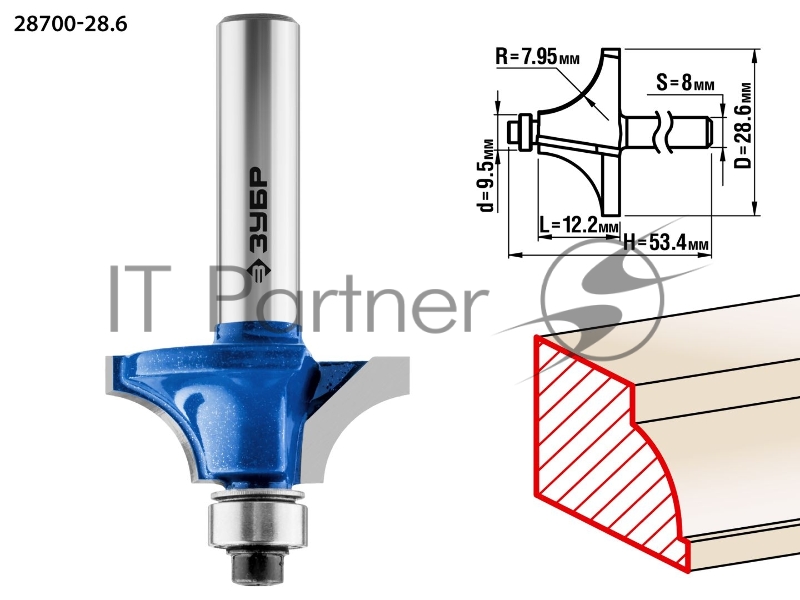 Фреза кромочная калевочная №1 ЗУБР 28,6x13мм, радиус 8мм
