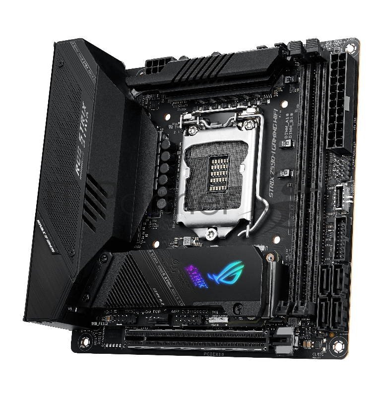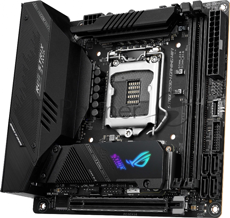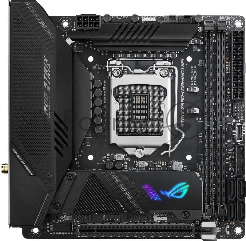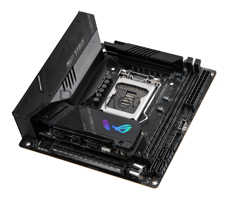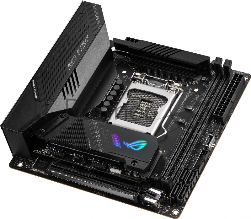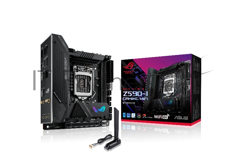 Материнская плата ASUS ROG STRIX Z590-I GAMING WIFI, LGA1200, Z590, 2*DDR4 , DP+HDMI, SATA3 + RAID, Audio, 2,5Gb LAN, USB 3.2*9, USB 2.0*4, mITX 90MB1680-M0EAY0
