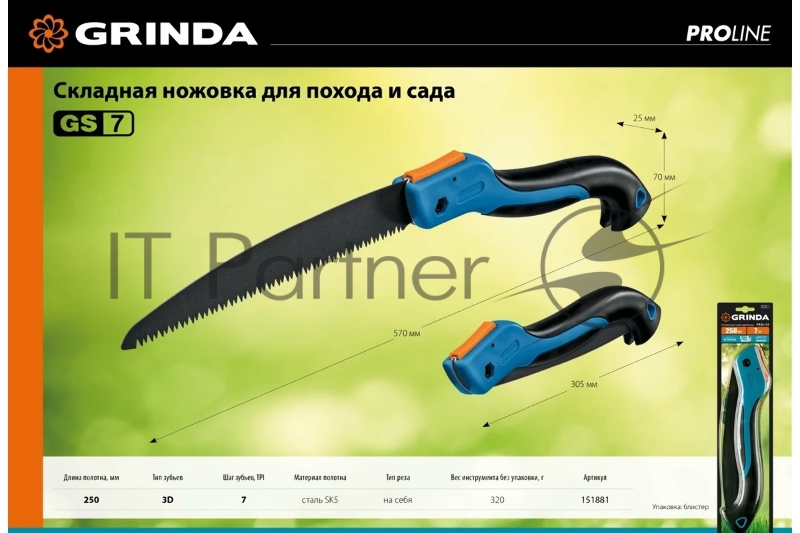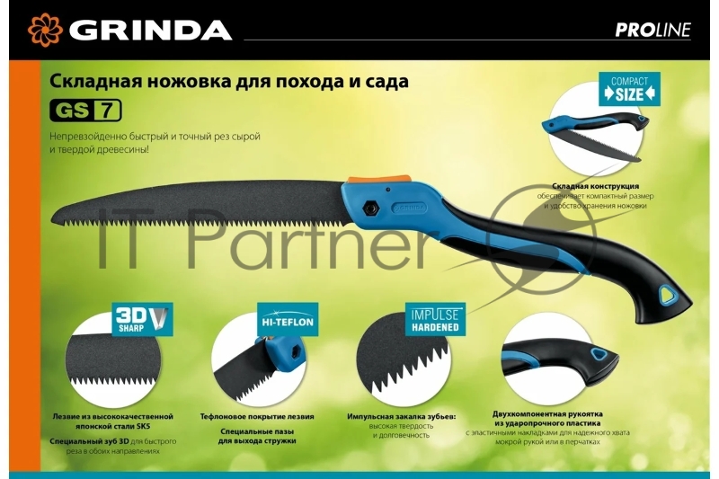 Ножовка для быстрого реза сырой древесины GRINDA GS-7, 250 мм
