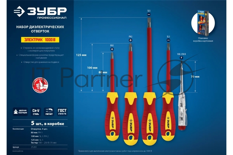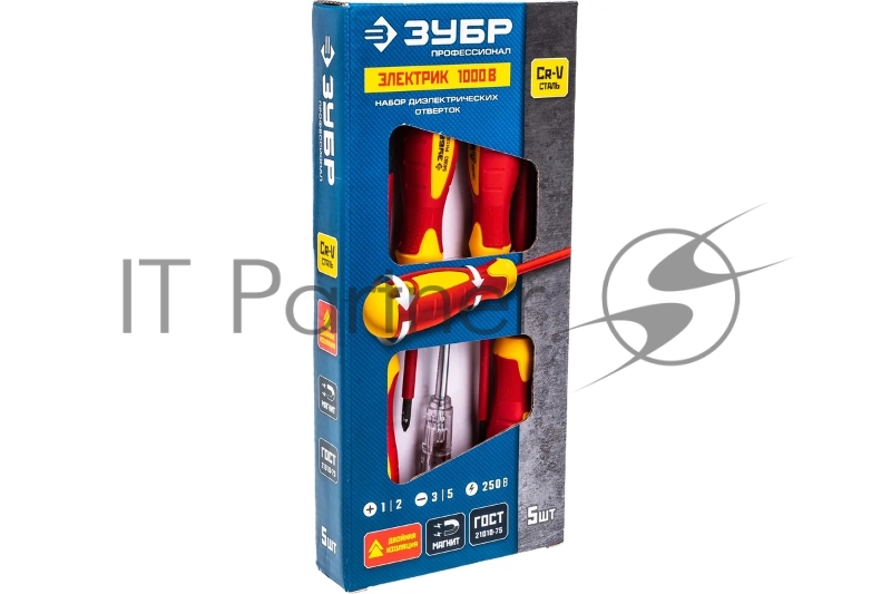 Набор: Отвертки SL 3, 5 / PH 1, 2, тестер 100-250 В, ЗУБР Профессионал 25265, в коробке, 5 предметов