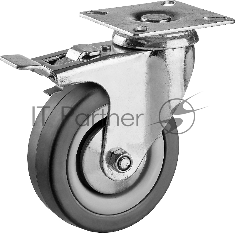 Колесо поворотное с тормозом d=75 мм, г/п 50 кг, резина/полипропилен, ЗУБР
