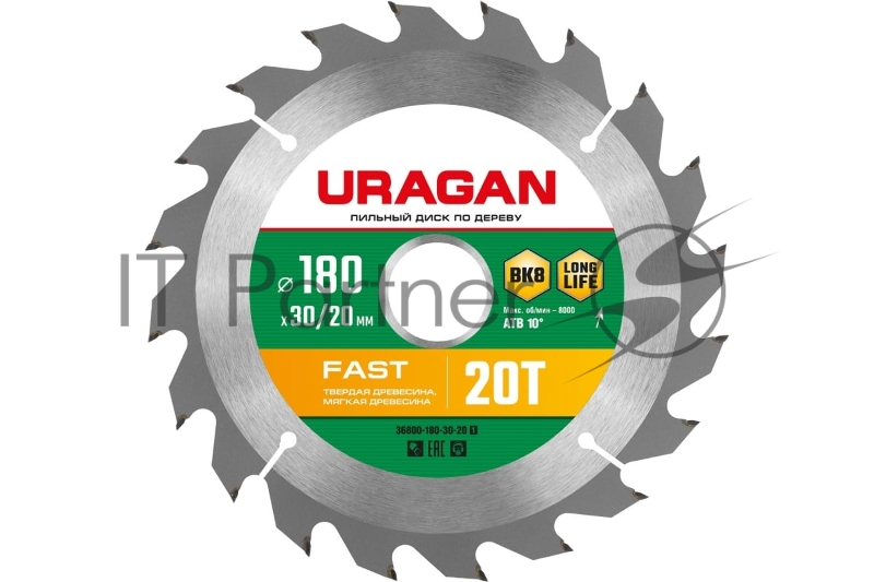 Диск URAGAN Fast 180х30/20мм 20Т, диск пильный по дереву