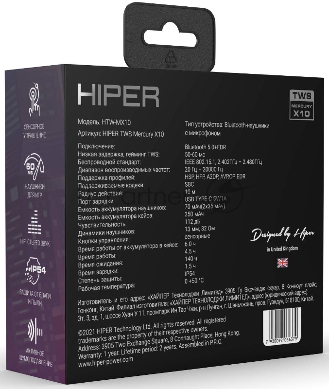Гарнитура вкладыши Hiper TWS Mercury X10 черный беспроводные bluetooth в ушной раковине (HTW-MX10)