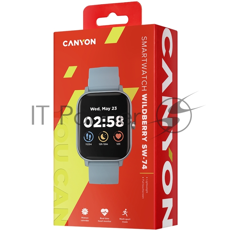 Смарт-часы CANYON Wildberry SW-74 Smart watch, 1.3inches TFT full touch screen, Zinc plastic body, IP67 waterproof, multi-sport mode, compatibility with iOS and android, blue body with blue silicon belt, Host: 43*37*9mm, Strap: 230x20mm, 45g