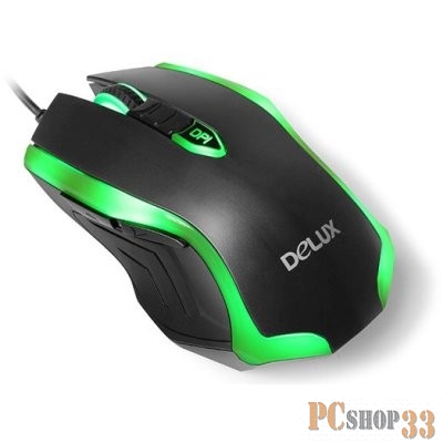 [Мышь] Мышь DELUX "M-556" , опт., (800/1200/1600/2400 DPI), USB, (5кн+скролл), черно-зеленая, с подсветкой