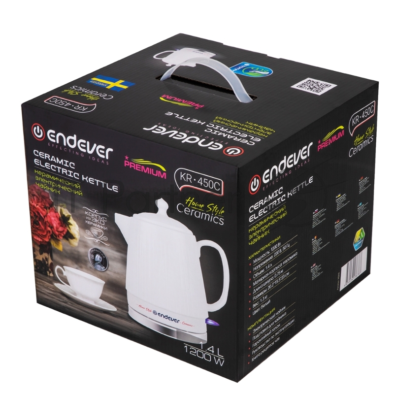Чайник электрический керамический Endever KR-450C 1200 Вт, емкость 1,4 л, белый, 6 шт/уп.