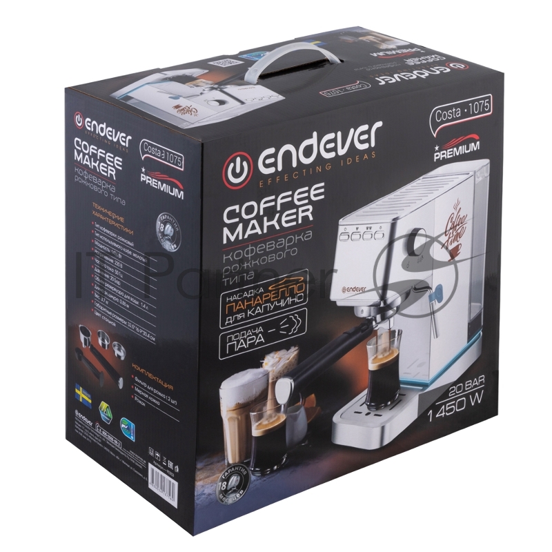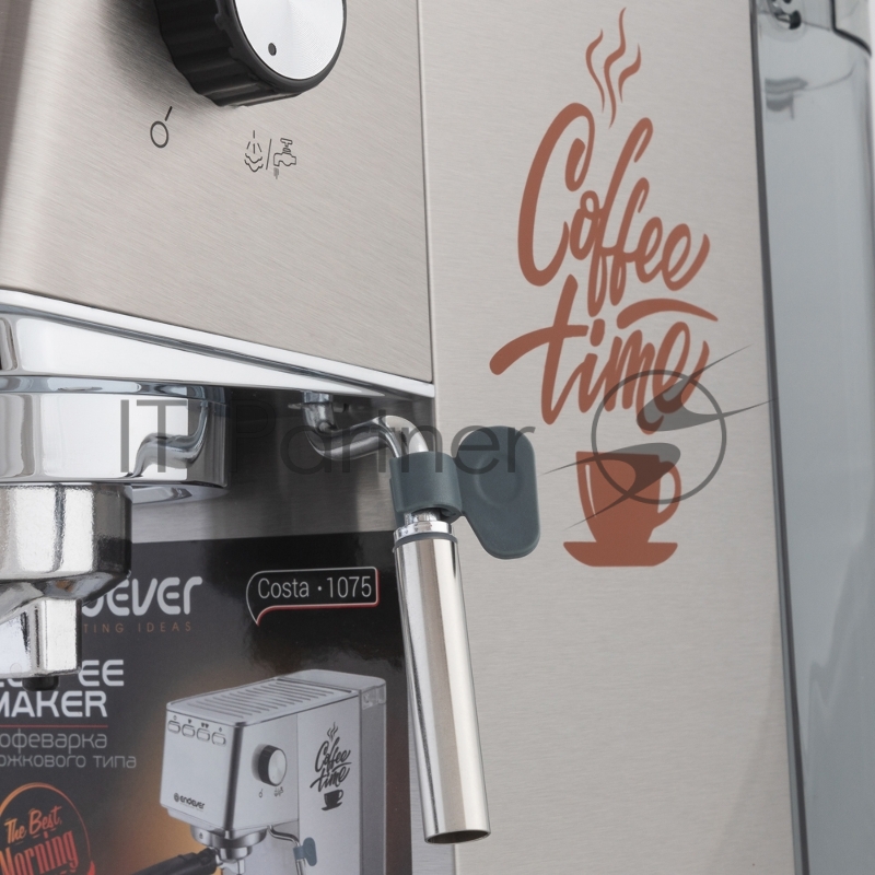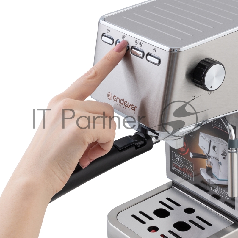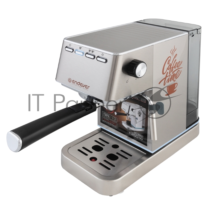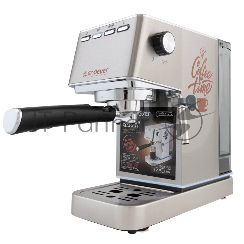 Endever Costa-1075 кофеварка рожковая электрическая, объем-1.4л, материал- нержавеющая сталь, мощность:1450 Вт, давление пара 20 бар, 2 шт/уп