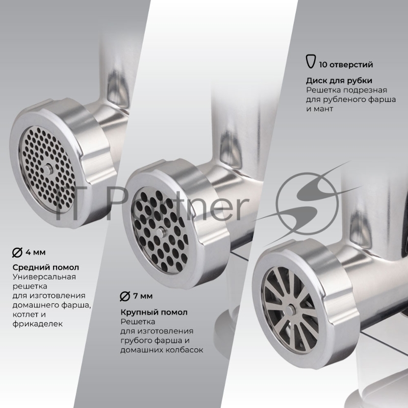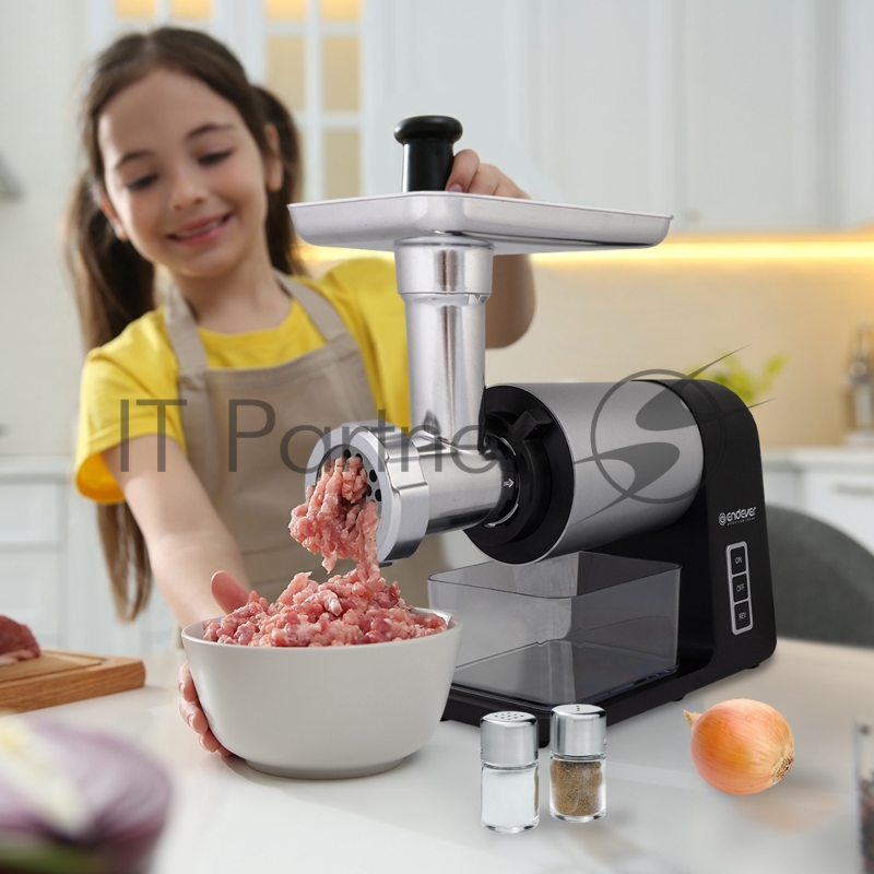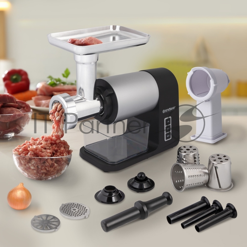 Мясорубка электрическая Endever Sigma-107, мощность 2000 Вт, в комплекте 3 решетки и 3 насадки, черный/стальной, 2 шт/уп