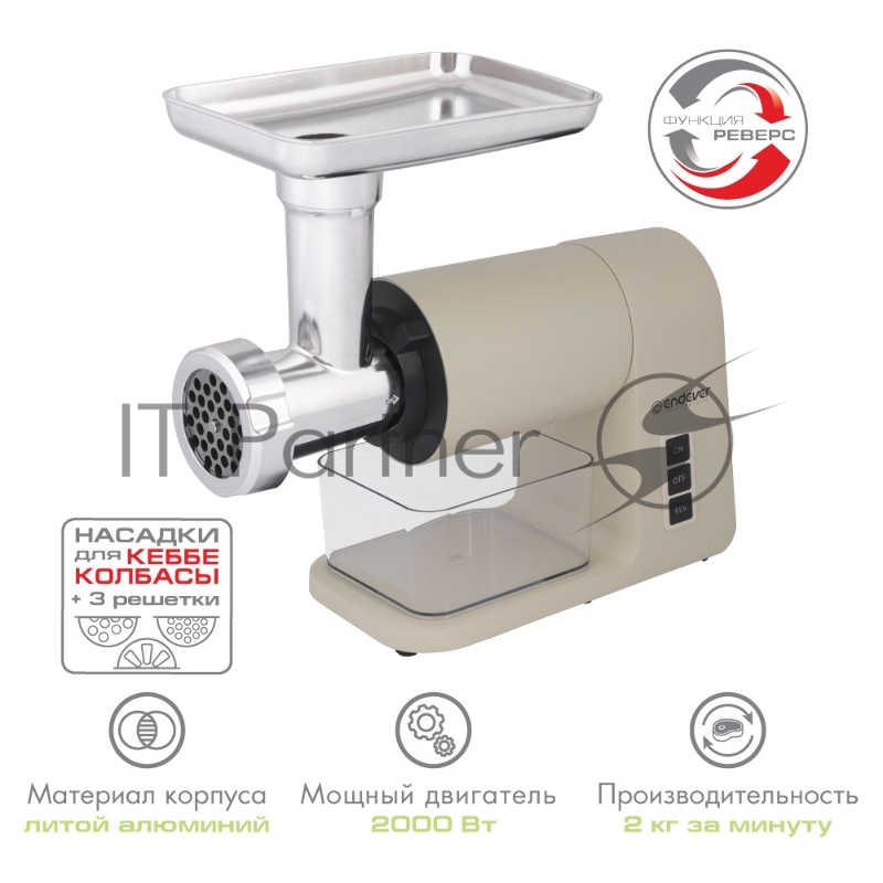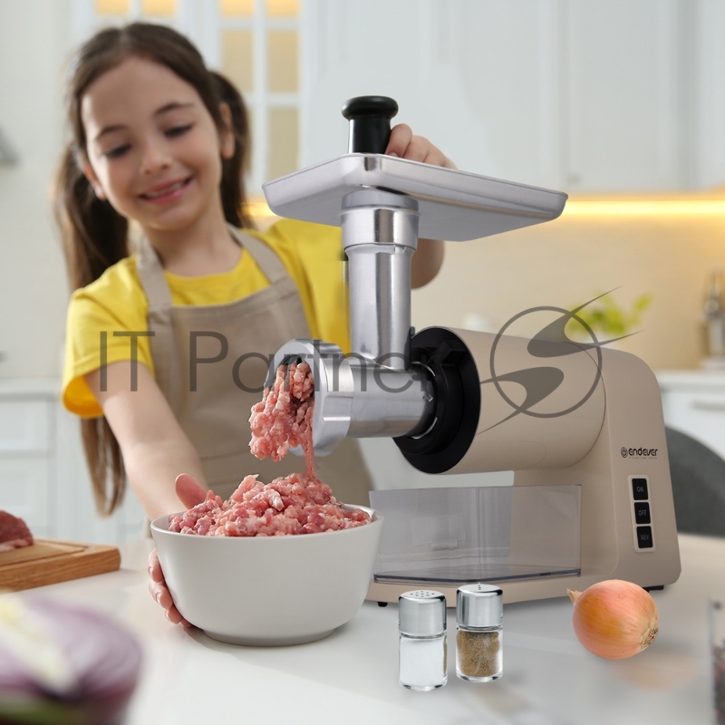 Мясорубка электрическая Endever Sigma-106, мощность 2000 Вт, в комплекте 3 решетки и 3 насадки, бежевый, 2 шт/уп
