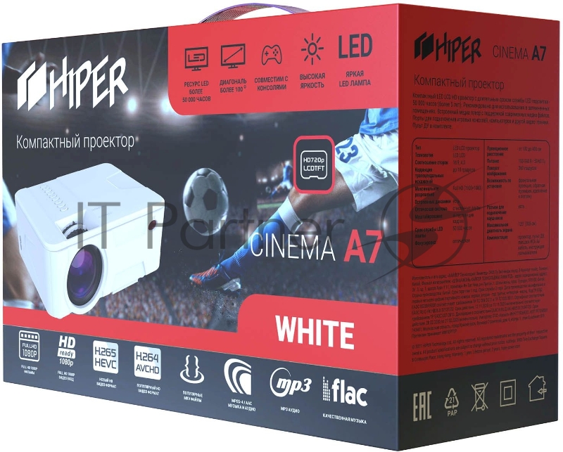 Проектор Hiper Cinema A7 LCD 3500Lm (1280x720) 2000:1 ресурс лампы:50000часов 1xUSB typeA 1xHDMI 1кг