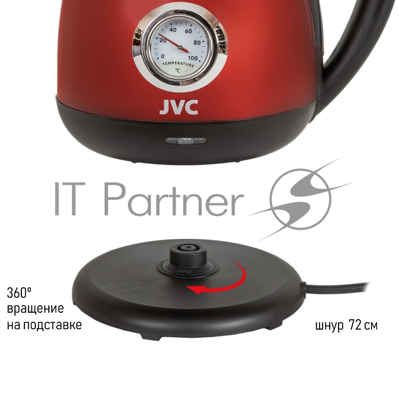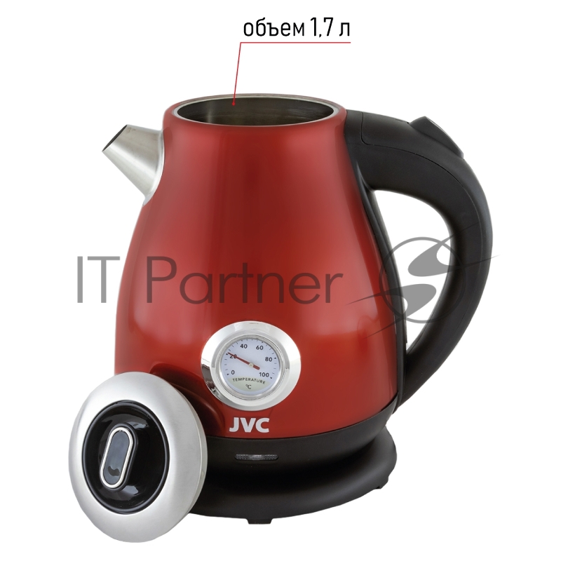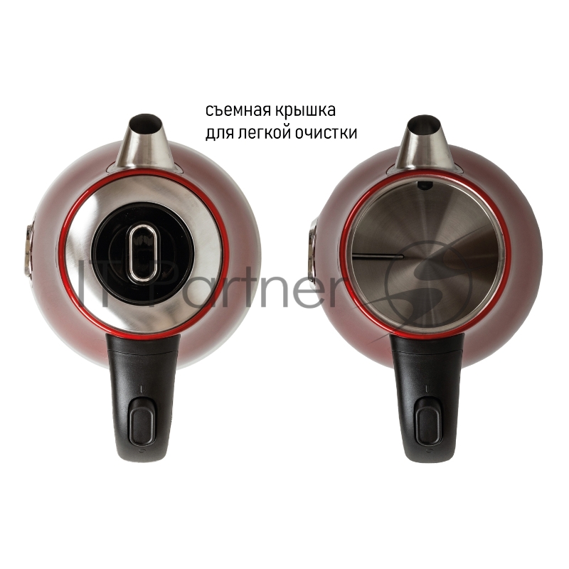 Чайник электрический, объем 1,7л, максимальная мощность 2200 Вт, встроенный в корпус датчик температуры воды, индикатор уровня воды, съемная крышка, фильтр от накипи, защита от включения без воды, автоматическое отключение при закипании, вращение на