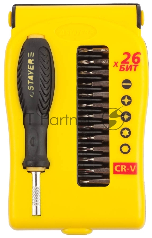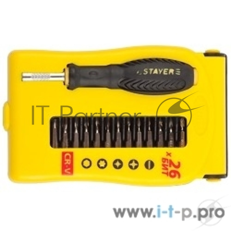 Набор STAYER: Отвертки MASTER, для точных работ, Cr-V, Cr сменные биты, обрезиненная рукоятка, 28предметов, (25614-H28)