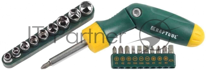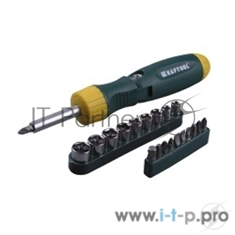 Наборы отверток Набор KRAFTOOL Отвертка BIT-LOCK реверсивно-рычажная с битами и торцевыми головками, 21 предмет (26151-H21)