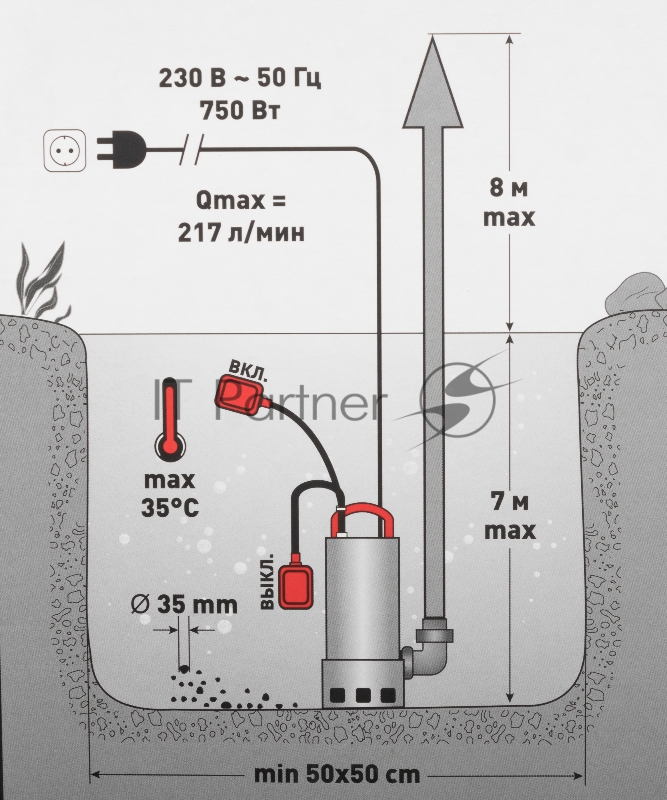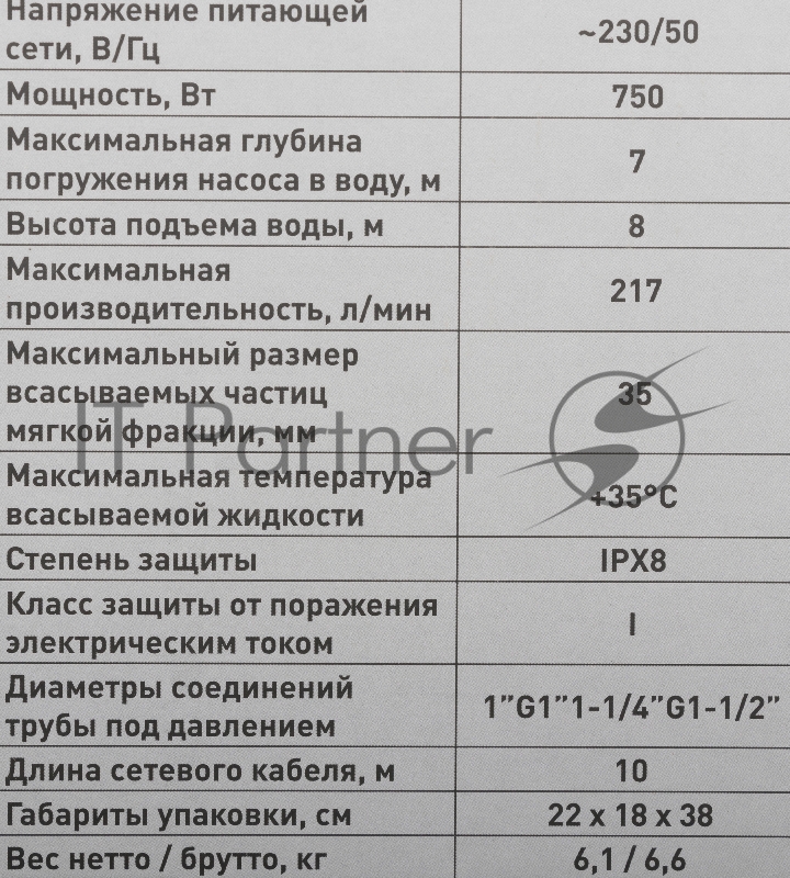 Насос садовый дренажный Парма НД- 750/35Н 750Вт 13020л/час (02.012.00028)