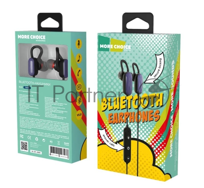 Наушники Bluetooth вакуумные с шейным шнурком More choice BG10 (Blue)