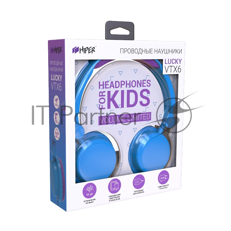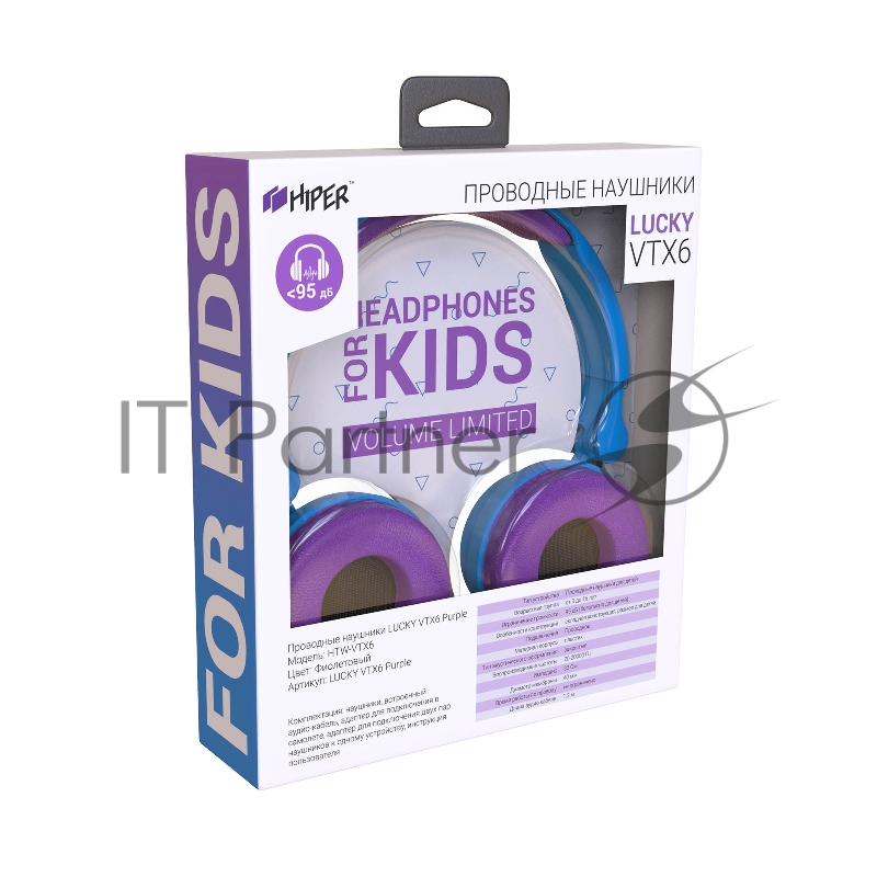 Наушники Hiper LUCKY Purple детские 20-20000 Гц, 95 дБ (безопасно для детей), 32 Ом, jack 3.5 mm, цвет: Фиолетовый