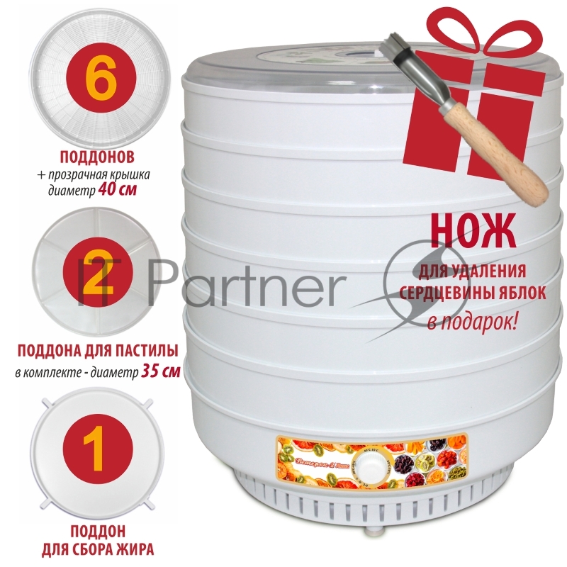Сушилка для овощей Ветерок-2 Люкс (кол-во сит-6) в гофротаре+ 2 поддона для пастилы , 600 Вт, непрозрачные уровни, крышка прозрачная+ нож
