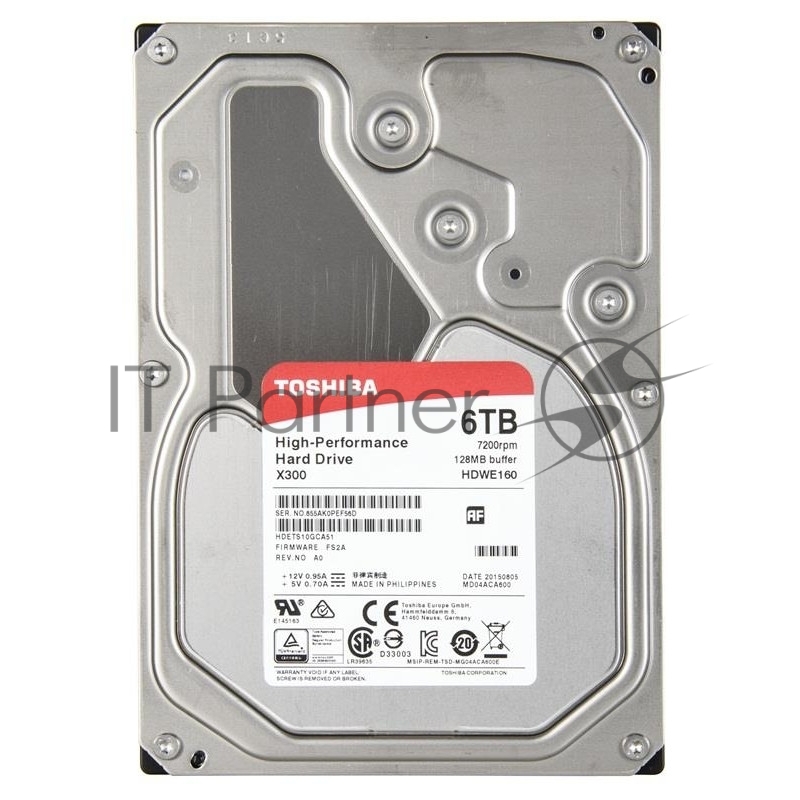 Жесткий диск 6TB Toshiba X300 (HDWE160UZSVA) {SATA 6.0Gb/s, 7200 rpm, 128Mb buffer, 3.5"}
