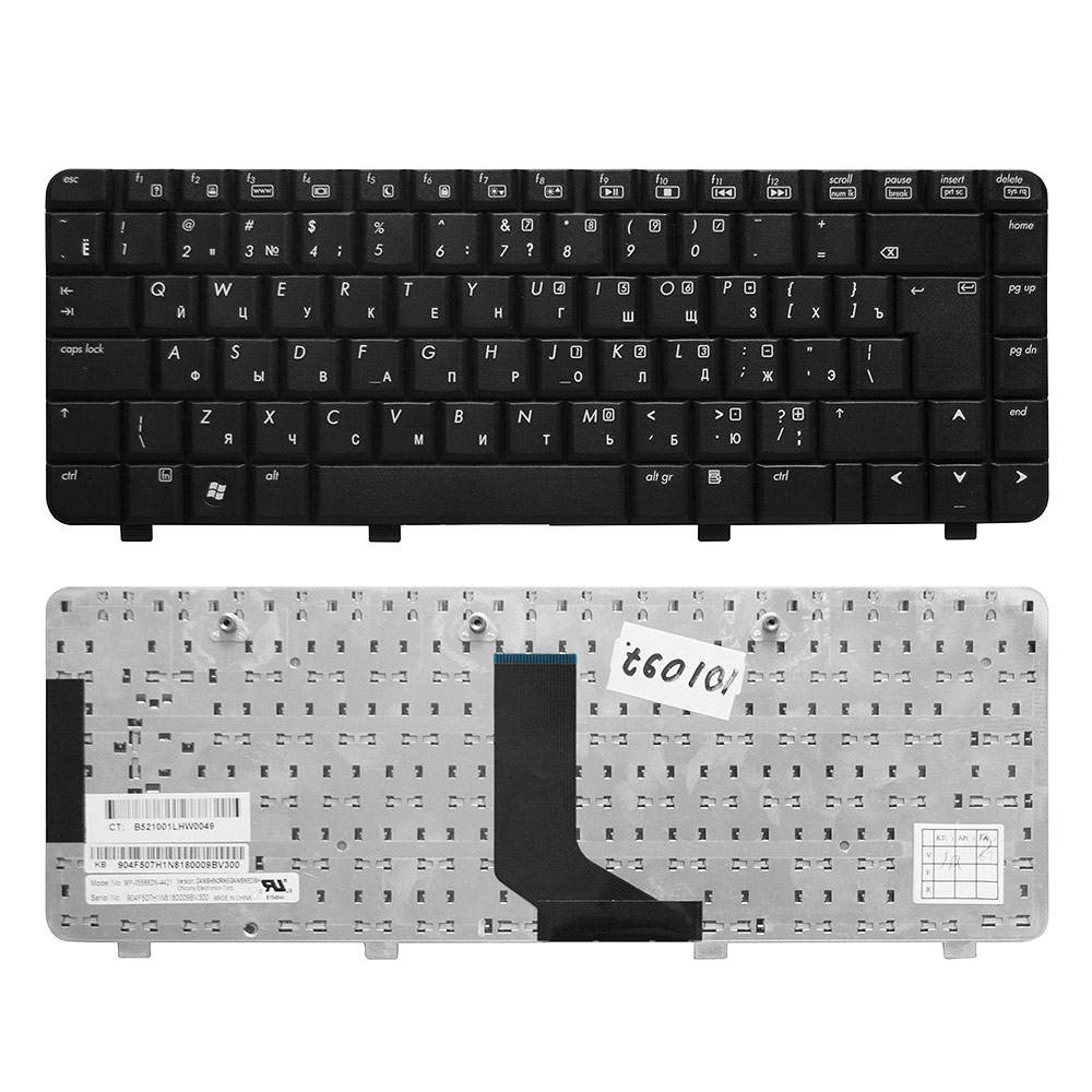 Клавиатура для ноутбука HP Pavilion DV2000, Compaq Presario V3000 Series. Г-образный Enter. Черная без рамки. NSK-H520R, 9J.N8682.20R.