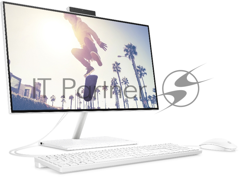 Моноблок HP 24-cb0041ur AiO 23.8(1920x1080)/Intel Celeron J4025(2Ghz)/4096Mb/256PCISSDGb Internal Graphics /Cam/WiFi/war 1y/Starry White/FreeDOS + kbd/mouse