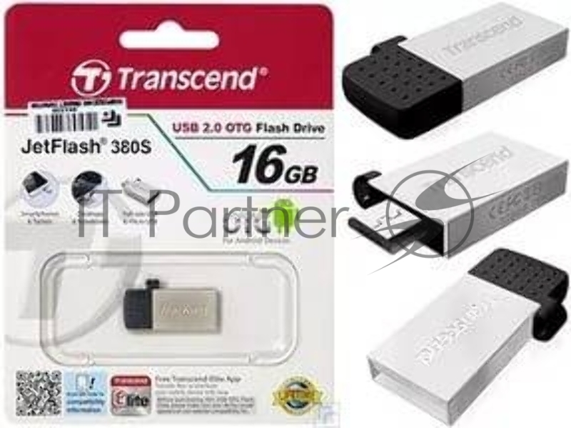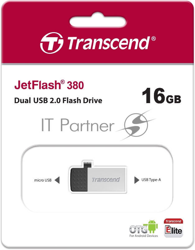 Флеш Диск Transcend 16Gb On-the-Go (OTG) TS16GJF380S USB2.0 серебристый