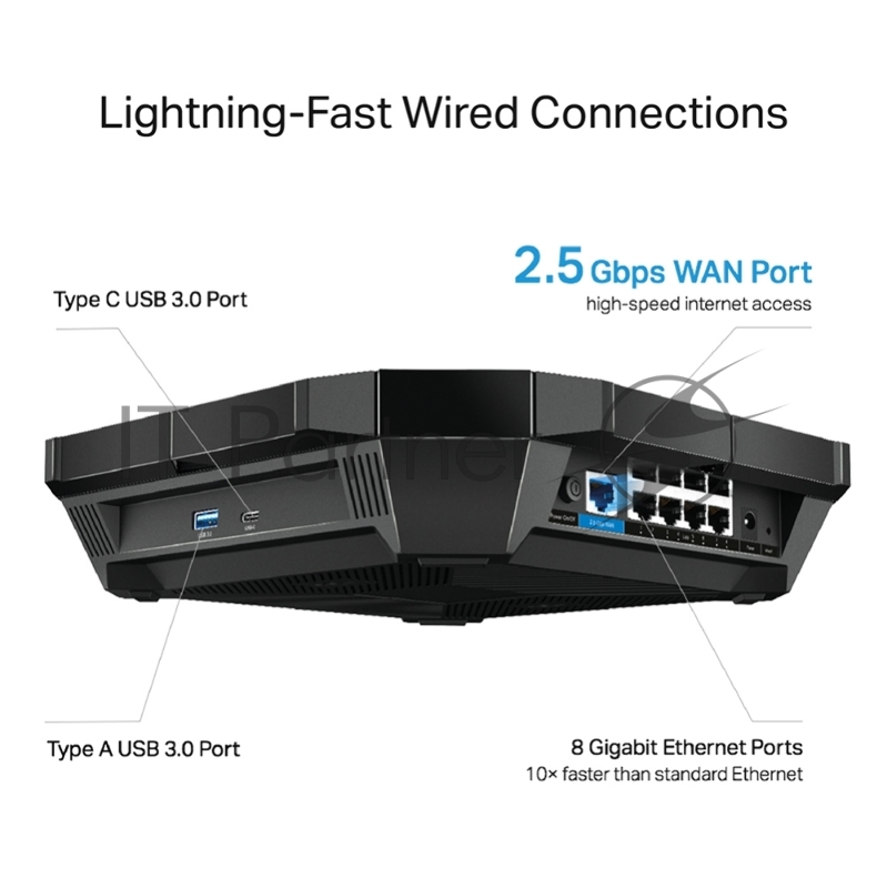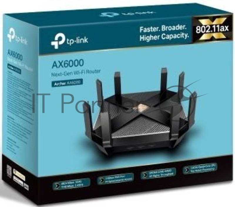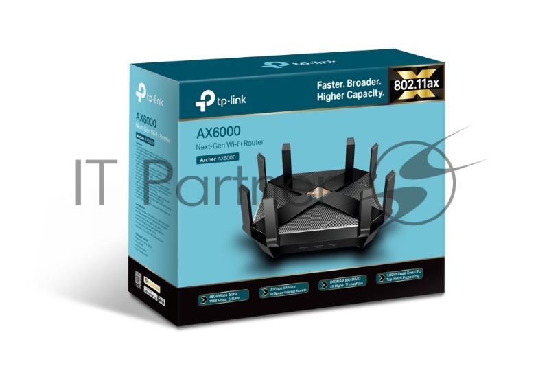 Беспроводный двухдиапазонный маршрутизатор TP-Link Archer AX6000, 5952Мбит/с (5 ГГц до 4804 Мбит/с + 2,4 ГГц: до 1148Мбит/с), 1x WAN 2,5 Гбит/с, 8x LAN 1000 Мбит/с, 1x USB-A 3.0 + 1x USB-C 3.0, 8 внешних антенн