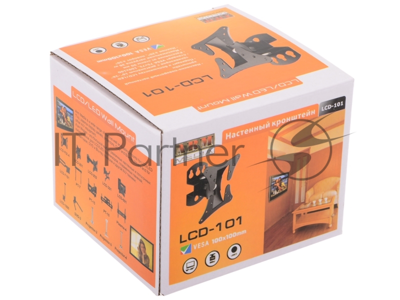 Кронштейн ARM Media LCD-101 для LCD/LED ТВ 10-26, настенный, 2 степени свободы, VESA 50/75/100, max 30 кг Черный