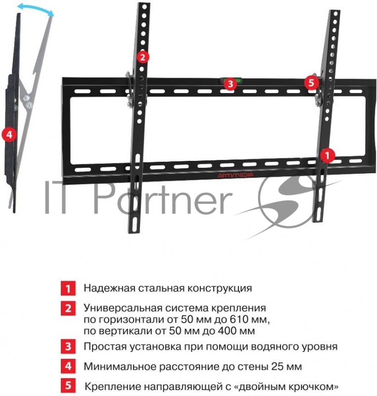 Кронштейн Arm media STEEL-2 new black, настенный для TV 32-90, max 40 кг, 1 ст св., нак. 0°-15°, от ст. 28,5 мм, max VESA 600x400 мм.