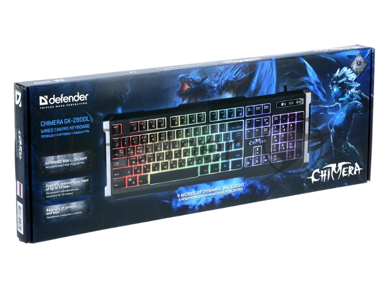 Клавиатура Defender Chimera GK-280DL RU [45280] {, RGB подсветка, 9 режимов}