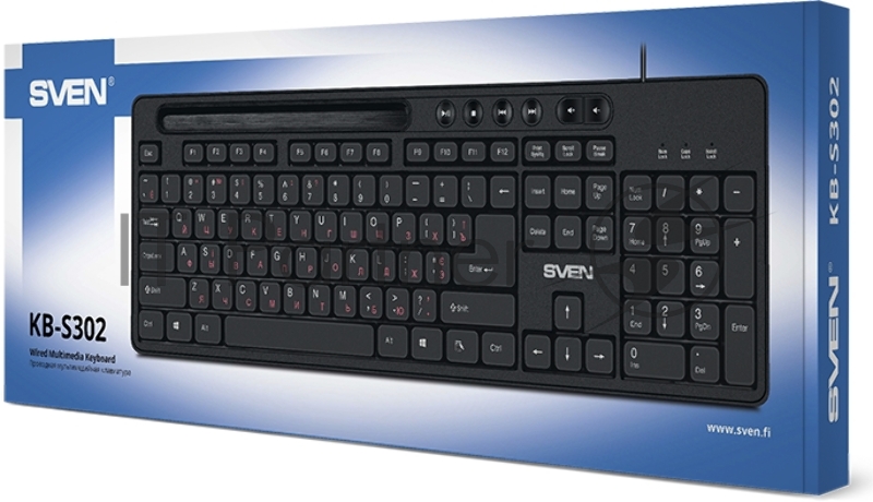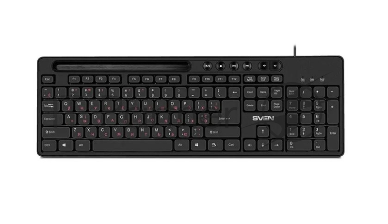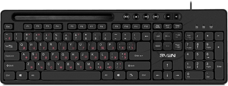Клавиатура SVEN KB-S302 чёрная (110кл., трей для телефона)