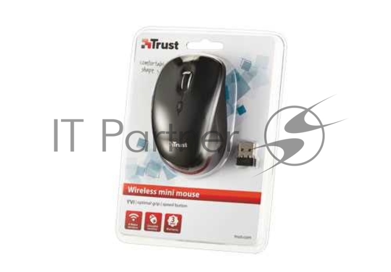 Мышь Trust Wireless Mouse Yvi, USB, 800-1600dpi, Black, подходит под обе руки [18519]