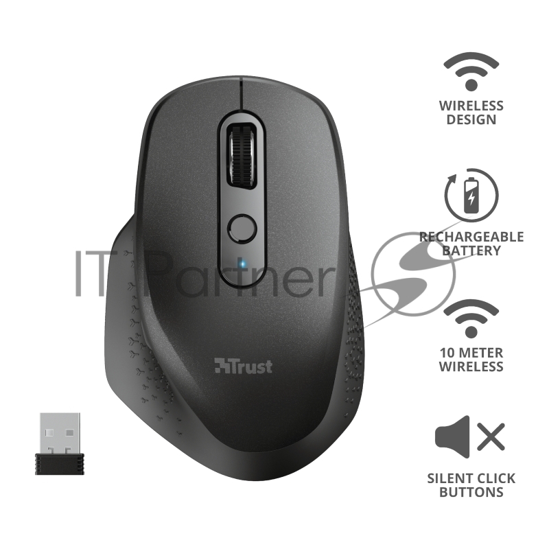 Мышь беспроводная Trust 23812 аккумуляторная OZAA черная